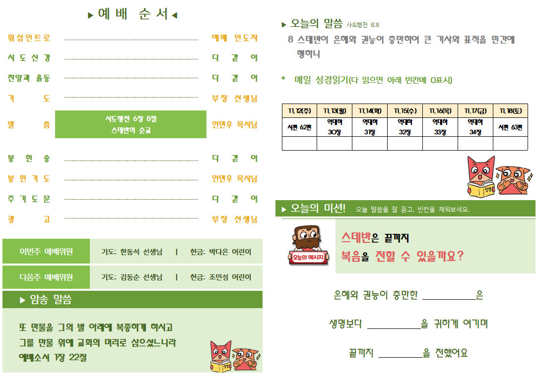 8. 스데반이 은혜와 권능이 충만하여 큰 기사와 표적을 민간에 행하니